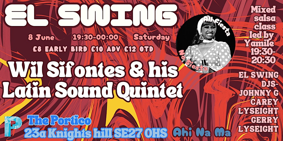 El Swing DJs: Carey, Gerry Lyseight & Johnny Gee with live set from Wil Sifontes & His Latin Sound Quintet. El Swing for the best in live and recorded Salsa.