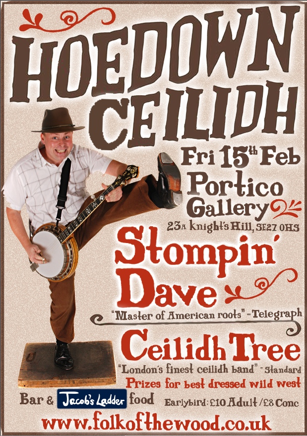 A rootin' tootin' Hoedown Ceilidh at Portico starring the banjo-wielding-step-dancing powerhouse Stompin Dave plus U.S. and ceilidh inspired sets of old time and celtic tunes with Ceilidh Tree and caller. Organic meat and halloumi burgers by Jacob’s Ladder, full bar with whisky, scrumpy and ales to keep you stompin'!