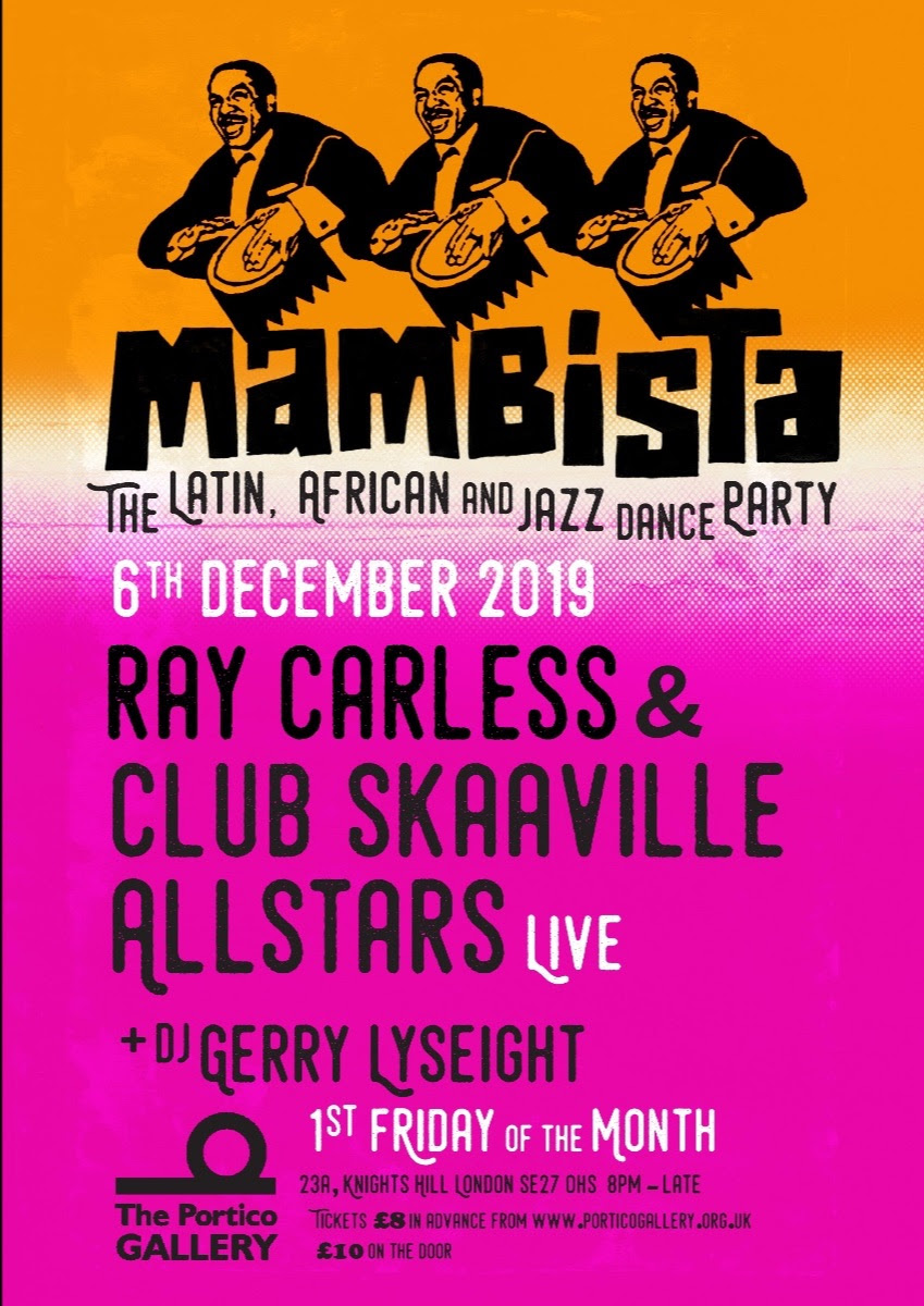 Ray Carless is a talented Jamaican saxophonist whose musical career spans close to 50 years. He started out on his musical journey working with a wide variety of pop jazz reggae brit-funk and African bands. Ray has played with groups like Cymande, ABC, Incognito, Jazz Warriors, Jazz Jamaica, Maxi Priest, Billy Ocean, Manu Dibango and Brit Funk Association. Alongside Ray, Club Skaaville Allstars feature Cameron Pierre and Alan Weekes on Guitars, Dennis Davis on Bass and Gary Williams on Drums: putting some Reggae in Your Jeggae!! Keep the first Friday of the month free for Mambista aka The Latin, African and Jazz Dance Party.