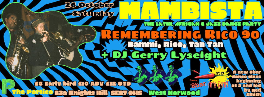 For the penultimate Mambista at The Portico we host Remembering Rico at 90 with a band of brothers led by Michael “Bammi” Rose. Back in 2017 one of the great Mambista nights was dedicated to the life and music of the legendary Ska, Reggae, Jazz and 2 Tone trombonist Rico Rodriguez MBE featuring many of the musicians who played alongside Rico in his long career, and it’s that time again!