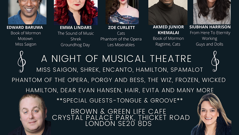 This show promises to be a magical evening full of your favourite show tunes topped off with a pinch of pop and a dash of jazz. The line up includes Edward Baruwa (The Book of Mormon, Motown, Miss Saigon ), Emma Lindars (The Sound of Music, Shrek, Groundhog Day), Zoe Curlett (Cats, Phantom of the Opera, Les Miserables), Akmed Junior Khemalai (The Book of Mormon, Ragtime, Cats) and Siubhan Harrison (From Here To Eternity, Working, The Ocean At The End of the Lane)