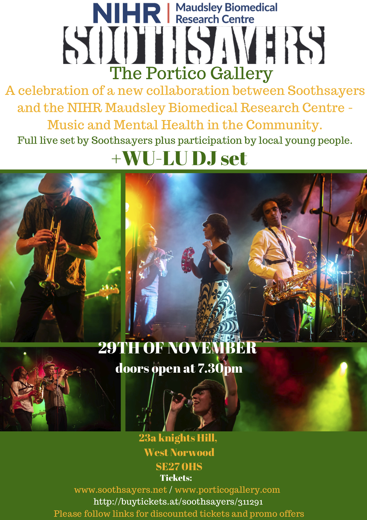 Soothsayers are playing at the Portico Gallery to celebrate their new role as artists in residence at the NIHR Maudsley Biomedical Research Centre in Camberwell.