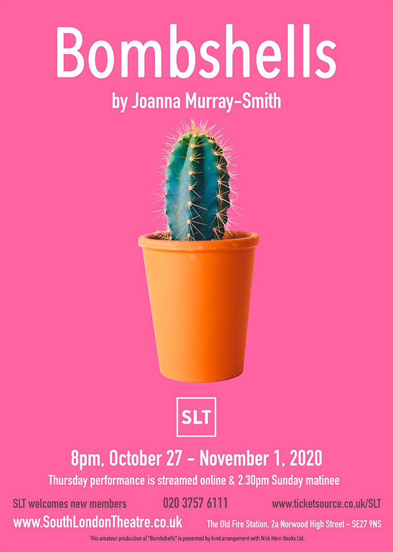 Having successfully held their first live performances in the South London Theatre auditorium, Bombshells is the next play to be presented by the SLT. A live socially-distanced performance over five nights plus a Sunday matinee, and also a live stream on Thursday 29 October. Bombshells: Four women balance their inner and outer lives with humour and often desperate cunning - from a feisty teenager to a 64 year-old widow yearning for the unexpected.