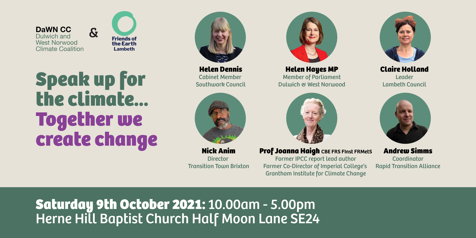 This event is your chance to hear from experts, politicians, young people, and inspiring community groups on how climate change affects us in Lambeth and Southwark, and to personally engage in shaping our low carbon future.