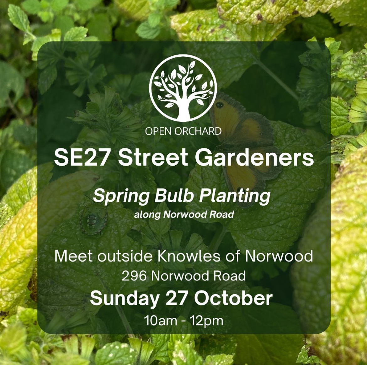 Join Open Orchard on Sunday 27 October, from 10am to 12pm, for spring bulb planting along Norwood Road!
