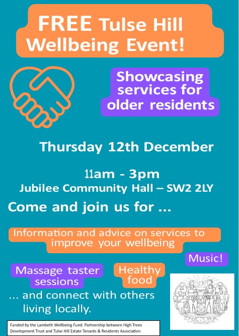 Tulse Hill is hosting a free Wellbeing event at the Jubilee Community Hall on Thursday 12 December from 11am to 3pm. This event is a great opportunity for local residents to access information and advice on services that can help improve health and wellbeing.