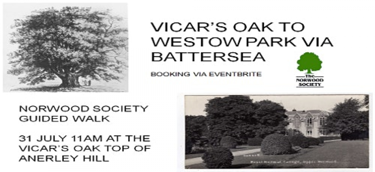 A walk from Vicar's Oak to Westow Park of past residents and establishments including the Norwood Infant Poor House, and the Norwood News.