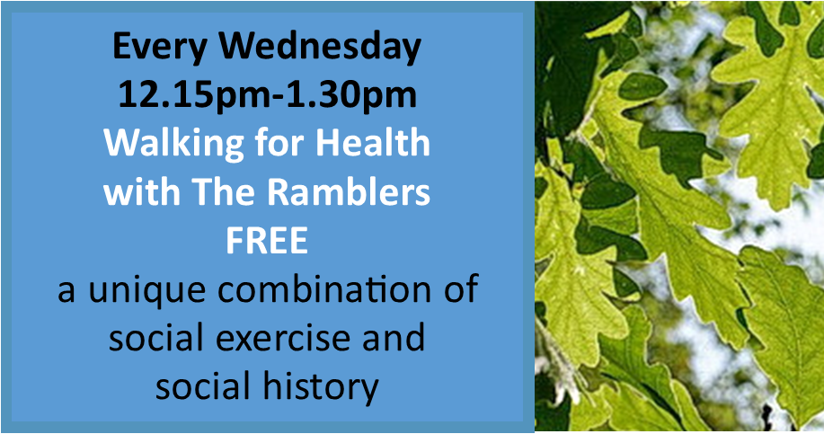 This is part of a national scheme. This activity runs locally every Wednesday, combining a short lunchtime walk around the 40 acre rural space that is West Norwood Cemetery. One of the "Magnificent Seven" cemeteries of London, West Norwood Cemetery is a site of major historical, architectural and ecological interest and a designated Green Flag public space. Hear some local social history (with a special Wild Norwood focus during the festival) relating to one of the graves/monuments. The walk is over easy terrain.