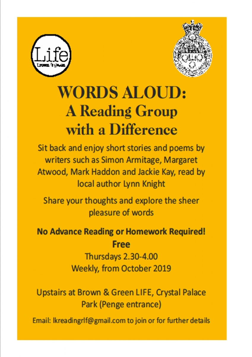 This free reading group starts 3 October 2019 and will run weekly upstairs at the Brown & Green cafe in Crystal Palace Park.