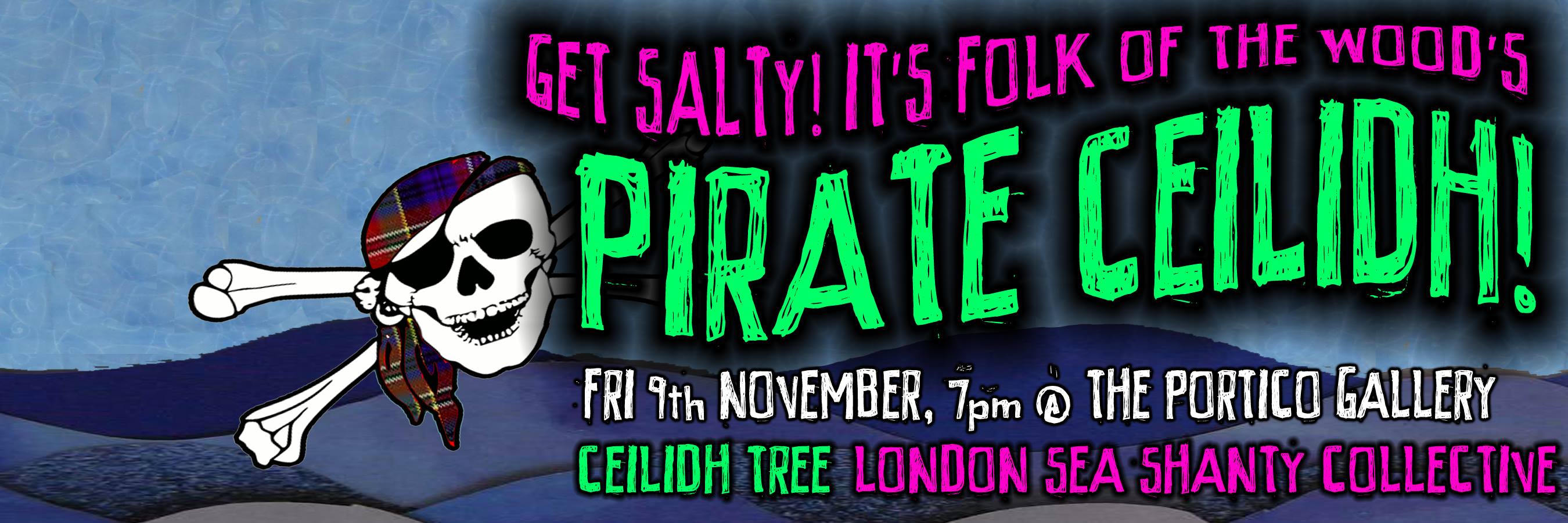 The last chance this year to dance the night away with Folk Of The Wood at their Pirate Ceilidh at Portico Gallery! Featuring dancing with Ceilidh Tree, pirate caller and stomping fiddles plus rousing songs with guests The London Sea Shanty Collective. Hot food by Beamish & McGlue, bar with ale, wine and grog to keep you reeling, prize for best dressed wenches and cap'ns! Here's some highlights of the dancing from previous salty shindigs.