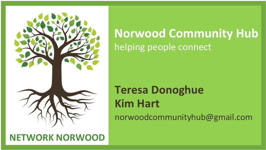 As a Community Hub, Network Norwood’s aim is to help people connect in the real world by improving accessibility to community events, activities and services. Community life and having a voice in local decisions are all factors that make a vital contribution to our health and wellbeing and we believe that a person’s social network is important too.