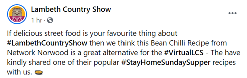 Network Norwood is delighted to be taking part in this year's Virtual Lambeth Country Show with our #StayHomeSupper project.