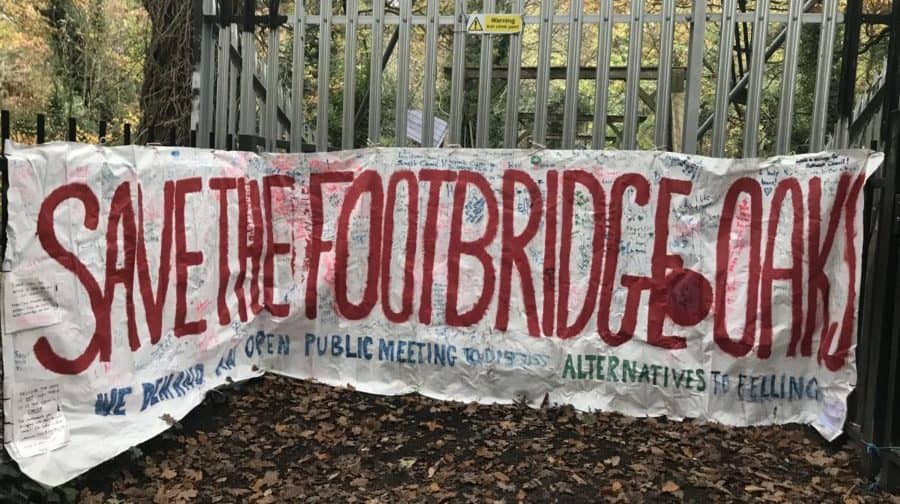 The Council had planned to fell the two trees to enable maintenance work to the footbridge - which has remained closed during the protracted dispute. Campaigners guarded the two oaks, thought to be 155 and 115 years old, day and night from mid-November. The petition to save the trees raised over 6,700 signatures.