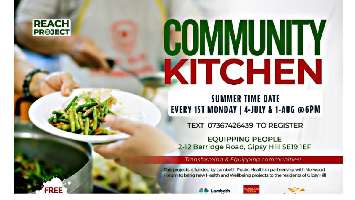 Equiping People is running a community kitchen at Gipsy Hill, near the train station or Salter Road.