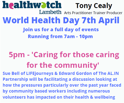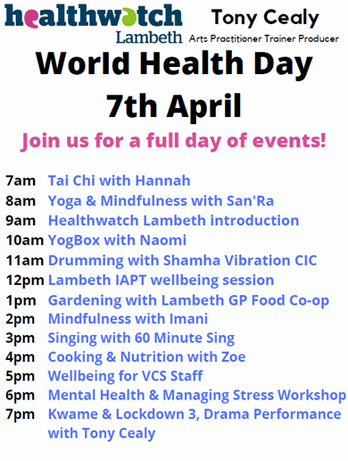 You are invited to join Healthwatch Lambeth and @TonyCealy for a full day of events and activities - all free.