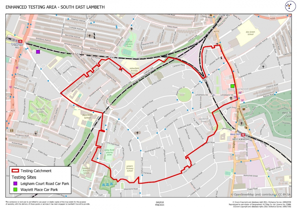 Residents who have questions about the enhanced coronavirus testing in parts of West Norwood and a small section of Streatham should visit lambeth.gov.uk/enhancedtesting.