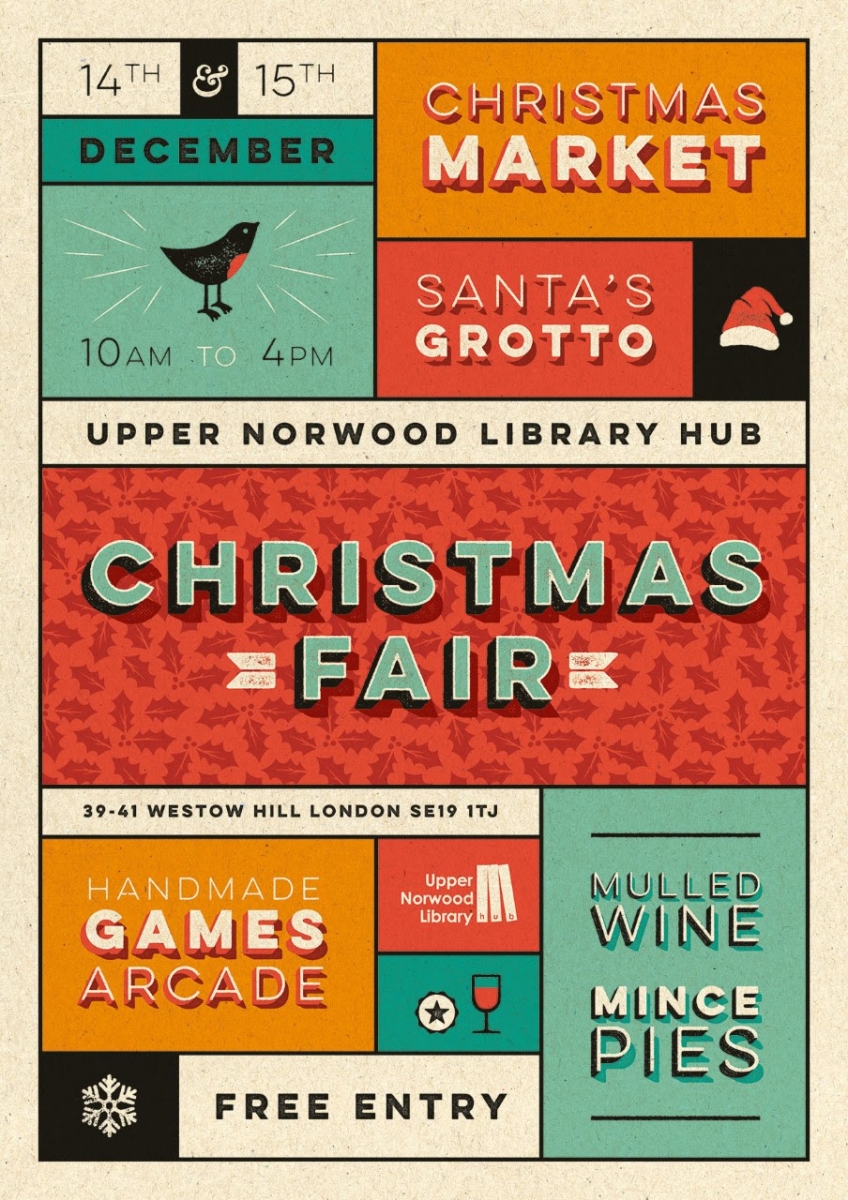 This winter the Upper Norwood Library Hub is hosting a Christmas Fair on 14 and 15 December 2019. This will include a Christmas Market, Handmade Games Arcade, fully licensed bar with mulled wine and mince pies, other food treats and of course a Santa’s Grotto. The focus will be on not only bringing people to shop but also to socialise.