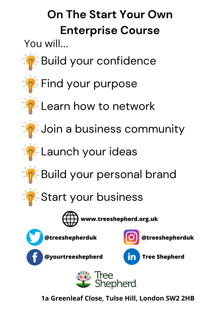 Tree Shepherd, who help and support people to start, run and grow businesses, have a free 6 week course for 18-30 year olds, living in Lambeth to help them start and grow a business.