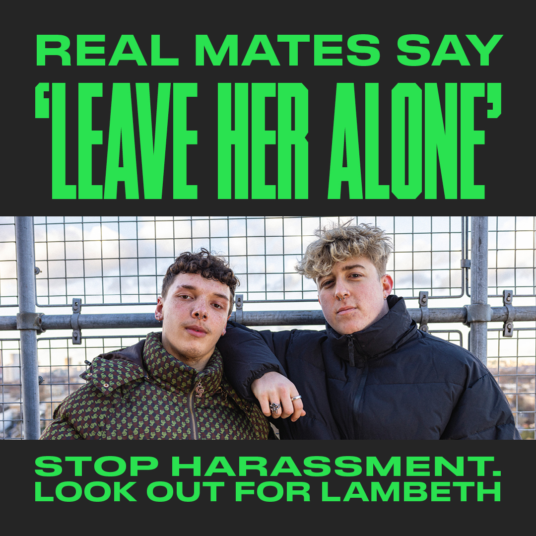 Lambeth Council has launched a new anti-harassment ‘Real mates say “leave her alone”’ campaign, which calls on men to challenge the sexual harassment and assault against women that happens on the streets of Lambeth.