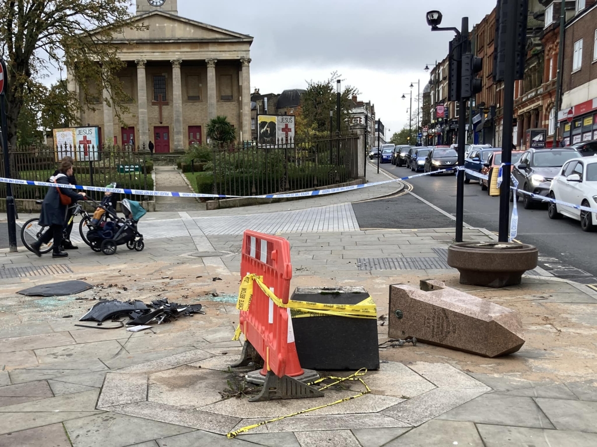 The fountain was broken into its three constituent parts by the accident (grey polished granite plinth, pink granite bowl and pink granite obelisk), and is now in safe storage at a Lambeth Highways depot. There is some doubt that the costs of repair and reinstatement can be met from any motor insurance policy - the driver of the car concerned is said to have left the scene of the accident. In any case we hope the Council can fund the works and seek restitution later; the Council is considering if funds can be found.