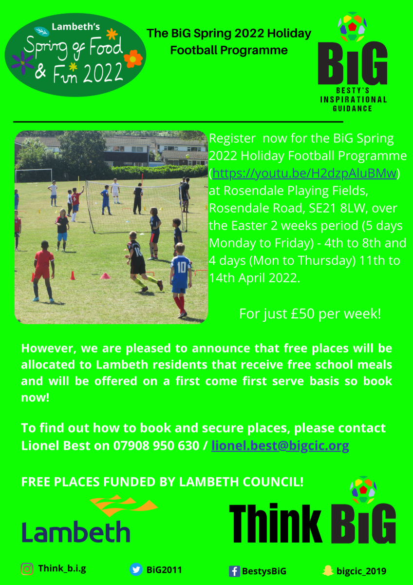 The programme will run between Monday 4 and Friday 14 April 2022 (excluding weekends) at Rosendale Playing Fields and see the flyer below for further info..