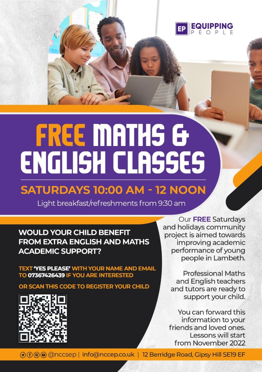 The next Community Kitchen is on Monday 28 November 2022 and then every last Monday in the month thereafter. The Community Christmas dinner is to be held on Saturday 17 December. Maths and English classes continue on Saturday mornings. Details for all events in the flyers below.