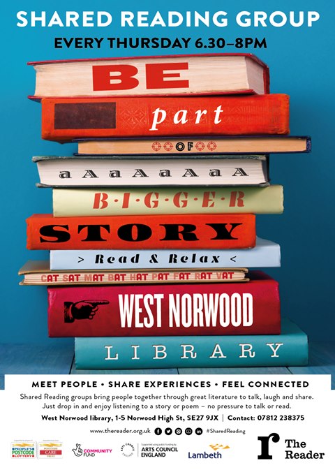 This group meets at West Norwood Library every Thursday (6:30-8pm), raising funds for the charity The Reader which promotes connecting with each other through reading a great work of literature together.