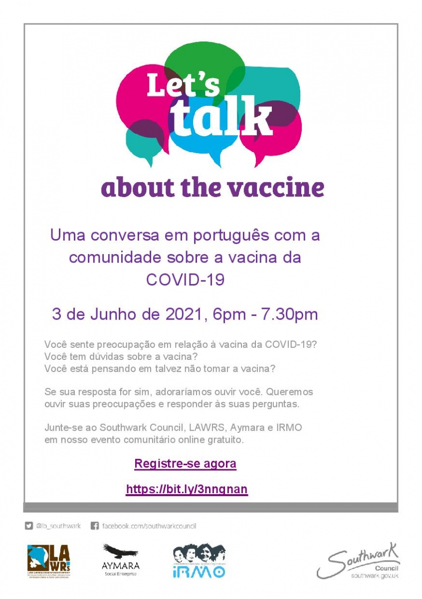 An important community event about the COVID-19 vaccination is to be held in Portuguese on Thursday 3 June between 6-7.30 pm. Hear from the experts and get your questions answered.