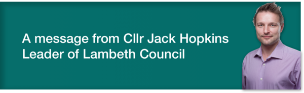 Councillor Jack Hopkins, Leader of Lambeth Council, has today written today to update Lambeth residents on Lambeth council’s response to the coronavirus COVID-19 pandemic and measures in place following Monday’s announcement by the UK Government. Read the message here: