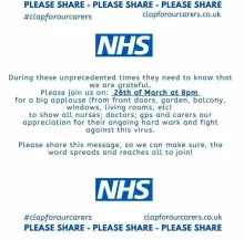The general public are being encouraged to give a huge round of applause to NHS staff tonight at 8pm. |