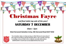 A final table top sale of the year and Christmas Fayre combined at Salvation Army, West Norwood. |