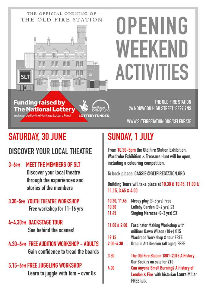 South London Theatre opening weekend activities