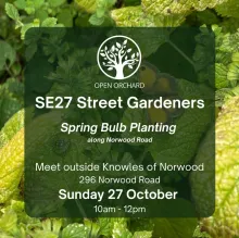 Join Open Orchard on Sunday 27 October, from 10am to 12pm, for spring bulb planting along Norwood Road! |