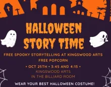 A FREE spooky storytelling at Kingswood Arts on Friday 25 October! There will be two sessions, one at 3.45pm and one at 4.15pm. There will be free popcorn too! Wear your best Halloween costume! |
