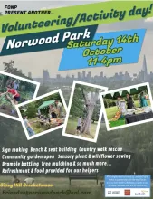 Run by the Friends of Norwood Park, the day will involve sign making and bench building, the community garden will be open, sensory plant and wildflower sowing, bramble bottling, tree mulching, refreshments and food provider for those that come along and help. Just turn up! |