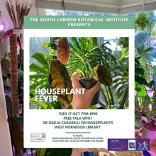 The South London Botanical Institute, in partnership with West Norwood Library, is delighted to invite you to join us for a free talk with Dr. Giulia Carabelli and discover the importance of houseplants and their roles in building worlds. |