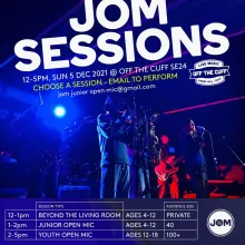JOM sessions are free youth open mics run by parents for ages 4-18 and all ability levels. |