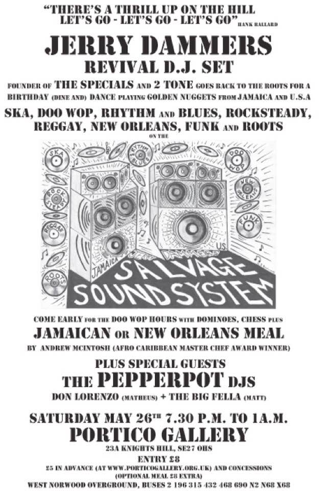 Five and a half hours of excellent music from the Doo Wop Hours, the Pepperpot DJs and the Salvage Sound System. Plus Jamaican or New Orleans food from Andrew McIntosh (Master Chef winner).