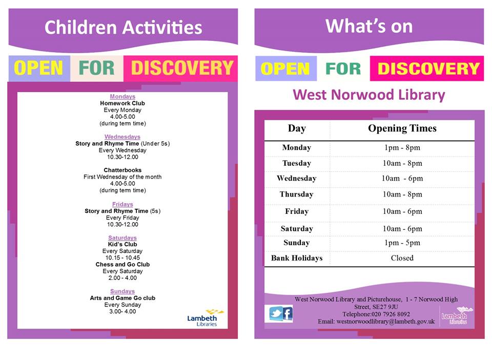 Email: westnorwoodlibrary@lambeth.gov.uk