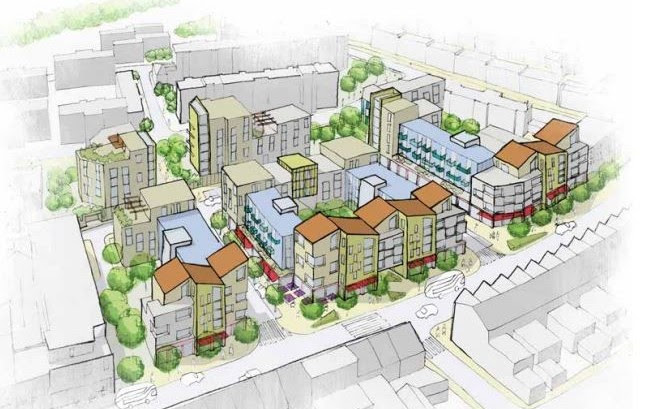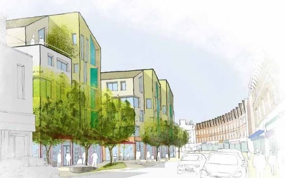 What is being proposed is their vision and could hardly be called a community hub or attractive. A planning application has been submitted that proposes a single 7 storey block of flats close to York Hill Estate and a 4 storey office block next to Waylett Place (see remaining pictures above). There will be no town square, no public places or destinations.